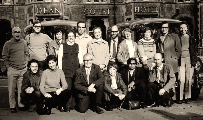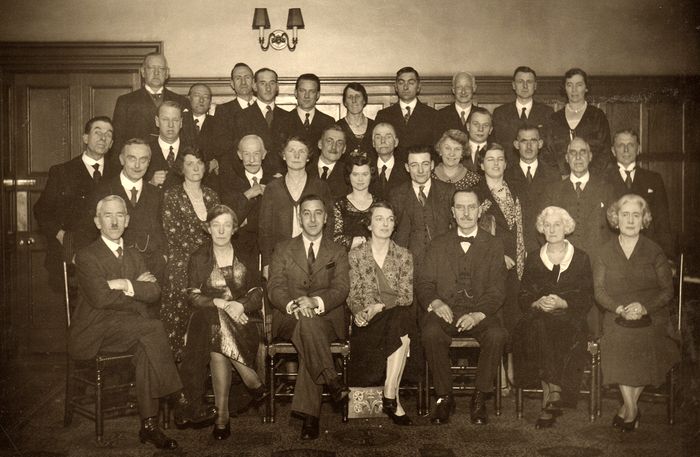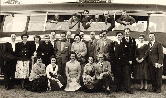 Left to right at back: Maurice Marchant; Kit Allard; ?; John Birchall; Bill Morris; Roy Brown; Harrison; Chris Corn; Peggy Richards; Stuard Pickford; Tony Hull; Basil Stewart; Ken Goodale.
