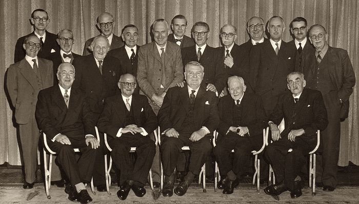 Club Members who knew John Keane photographed with his son John F Keane, 11 April 1959 Back row: Southgate-Quittenton; S E Whitaker; N Gryspeerdt; N L Coult; R S Hatfull.