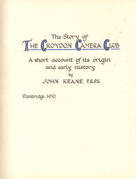 The following account of the foundation and early years of the Croydon Camera Club was compiled by me from the Minute Books of the Club some years ago when I went through the Books and extracted what I thought was worth recording. When completed the Story was read to the Club but it cannot be taken as recording every event since the Minute Books in the early days at any rate were not kept very well and possibly many episodes that would have interested us today were never entered. Anyhow those old Minute Books have now disappeared and can no longer be referred to but I think the following pages sum up fairly well, and as fully as it is now possible to reconstruct it, the story of the old Croydon Camera Club.