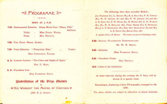 The Soiree was held on the 24th October 1899, at the Art Gallery, Croydon.