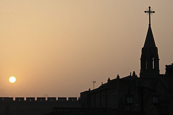 To quote Wikipedia: "Contre-jour, French for 'against daylight', refers to photographs taken when the camera is pointing directly toward the source of light. An alternative term is backlighting. Contre-jour produces backlighting of the subject. This effect usually hides details, causes a stronger contrast between light and dark, creates silhouettes and emphasizes lines and shapes. The sun, or other light source, is often seen as either a bright spot or as a strong glare behind the subject. Fill light may be used to illuminate the side of the subject facing toward the camera."