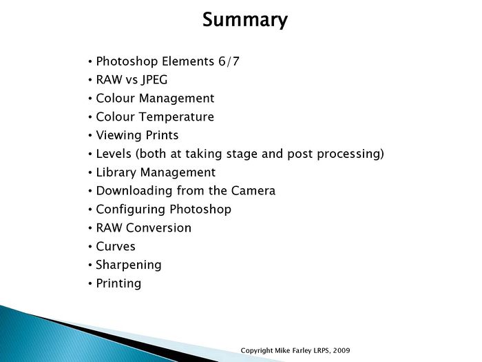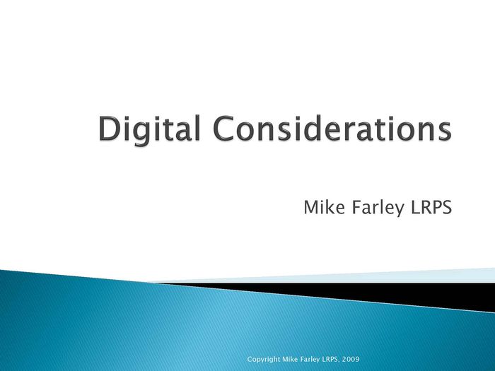 This presentation by Mike Farley LRPS was given at the Club in September 2008, but subsequently updated and represented on the 8th July 2009.